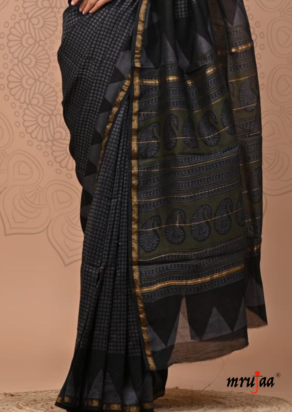 Chanderi Cotton Silk Saree – Handblock Printed ✨